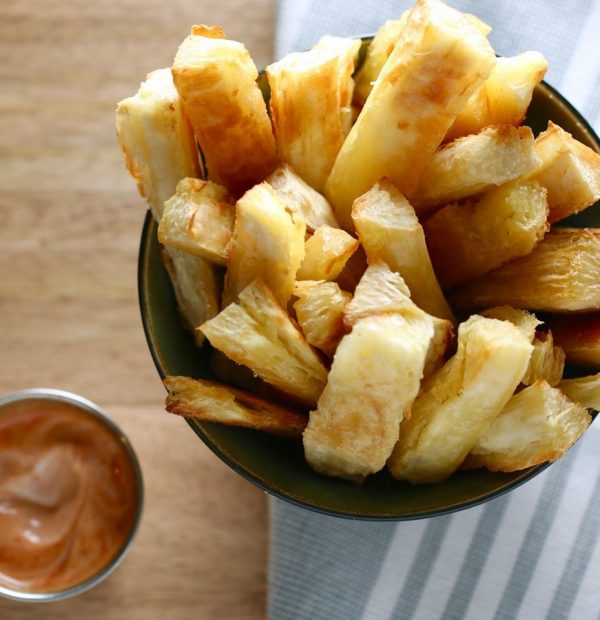 Baked Yuca Fries with Sriracha Mayo Dip
