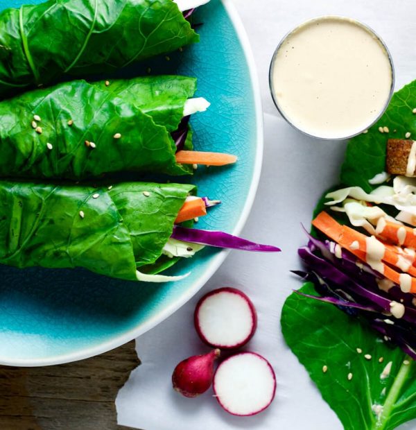 Veggie Collard Wraps w/ Peanut Sauce